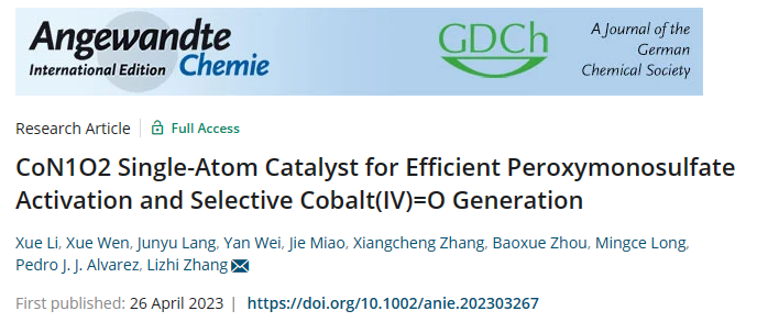 Prof. Long Mingce and Zhang Lizhi's Research Group Published a Paper in Angew. Chem. Int. Ed.: Proposing a CoN1O2 Single-atom Strategy for Selective Cobalt(IV)=O Generation via Peroxymonosulfate Activation