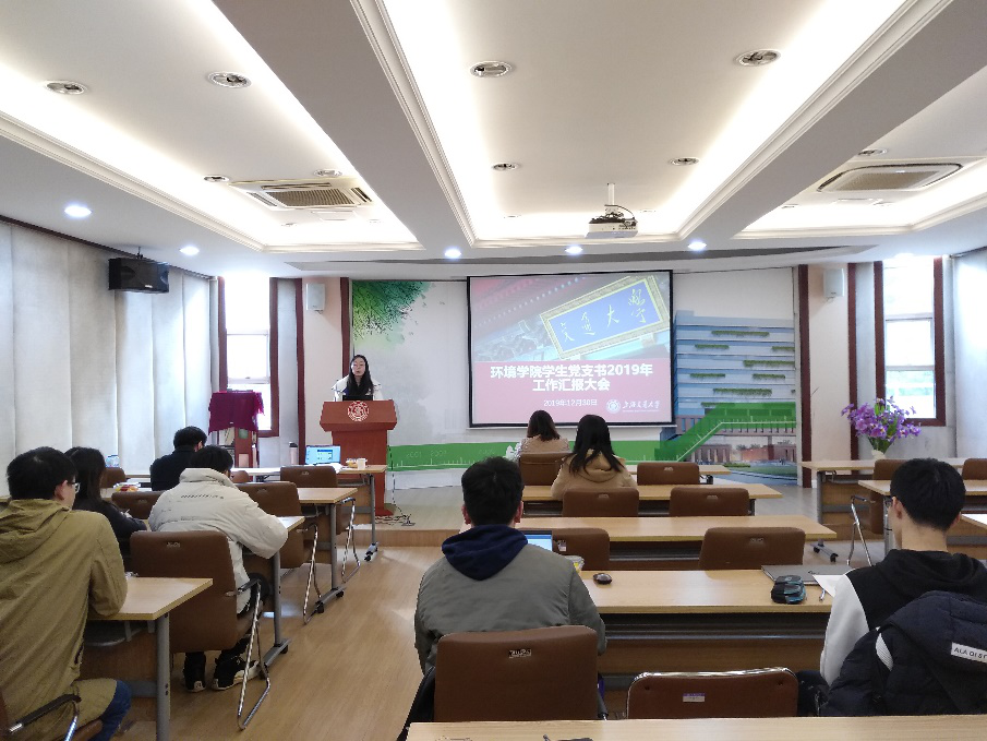 为深入开展“不忘初心,牢记使命”主题教育活动,全面总结2019年海角网 学生党建工作,全面落实从严治党要求,2019年12月30日上午,学生党支部书记在环境楼二楼报告厅进行了2019年学生党支部书记述职工作会议。