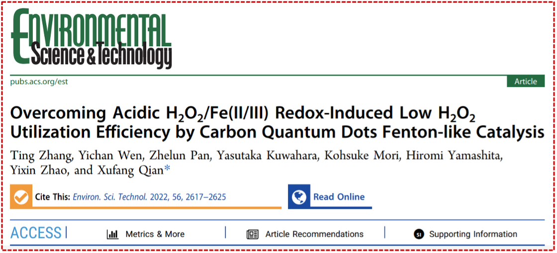 钱旭芳副教授在环境领域国际权威期刊ES&T发表类芬顿反应方面最新研究成果