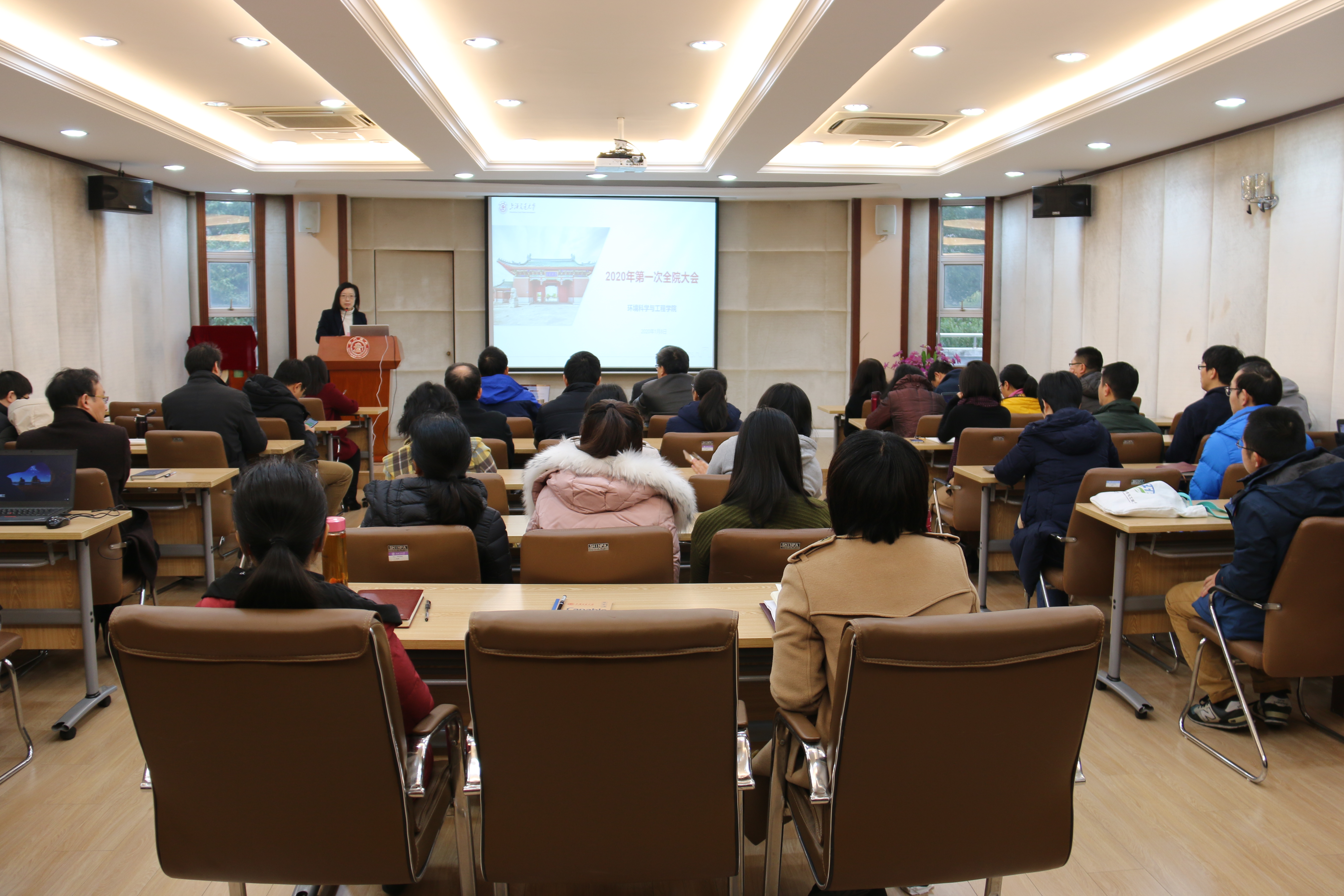 1月8日上午,海角网 2020年度第一次全院大会在学院报告厅召开,学院党政领导班子、全体教职工参会。