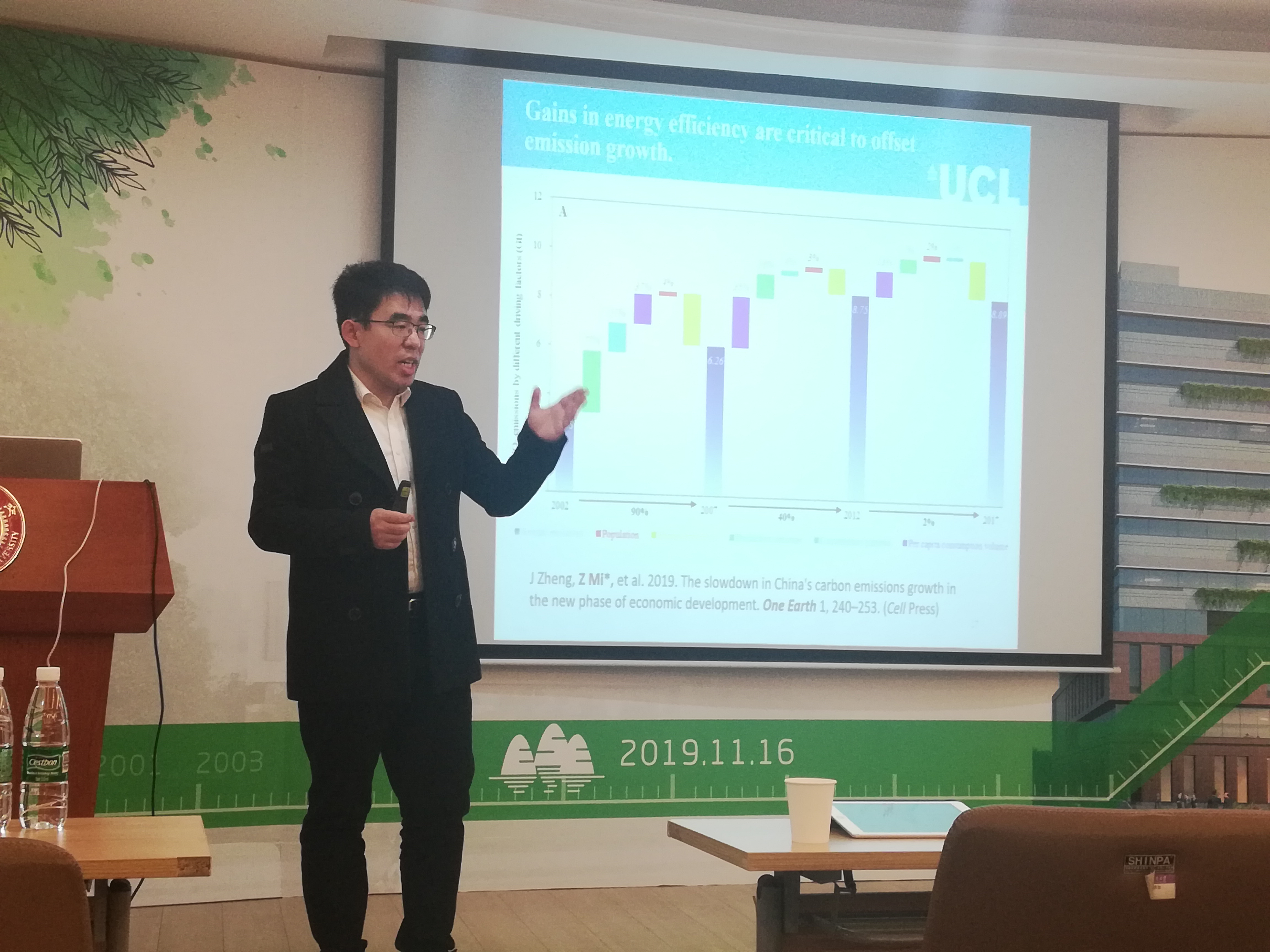2019年12月24日,应海角网 靳强研究员邀请,英国伦敦大学学院(UCL)助理教授米志付博士于环境科学楼二楼报告厅为交大师生带来题为“China’s carbon emissions in the new economic development phase” 的精彩学术报告。