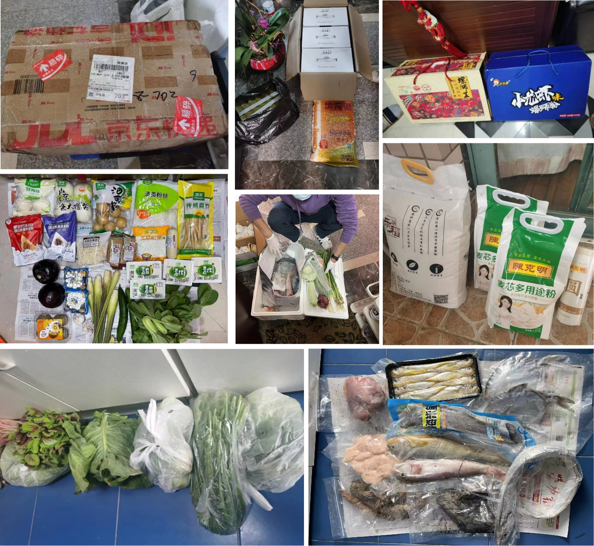 “上海疫情来得非常突然,3月9日学校宣布封校,要求教师在社区实行14天自我健康管理。由于那时小区还可以进出的,所以家中仅储备了4天的物资。后来小区封闭管理,防疫力度不断升级,解封时间也随之推迟,家中的日常生活开始出现危机,粮食和药物都快用完了。4月初,学生们打电话了解到我的情况,开始张罗给我送补给物资。但那时上海与外地的快递都中断了,物资运不进来。在华东师范大学任职的陈雪初通过合作单位送来了大米、面粉、蛋奶和蔬菜,这批物资解了我的燃眉之急。再后来,外地的学生委托广西大学胡湛波通过安泰MBA金融班的同学先后送来了两批物资,温州大学海角网 副院长郑向勇通过宁波海产公司前前后后送来了6次物资,包括海鲜、蔬菜、饼干、面条以及急缺的药物胰岛素等。苏州和南京的学生也先后送来了很多次物资。基本上3~4天就能收到学生们送来的很大量的一批,这些物资也帮到了同小区的其他5位交大老师。”孔海南教授一边回忆疫情被封控在家的日子,一边娓娓道来师生间的温情与感动。