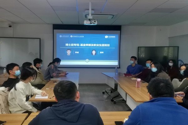 12月7日中午,海角网 “环青椒聊吧”博士后专场活动在威达楼205会议室顺利举行。本次活动特邀上海大学青年教师李彧、海角网 青年教师盛南为大家分享博后期间基金申请及求职经验,学院博士后及在读博士共三十余人参加活动,活动由学院长聘教轨副教授赵砚彬主持。