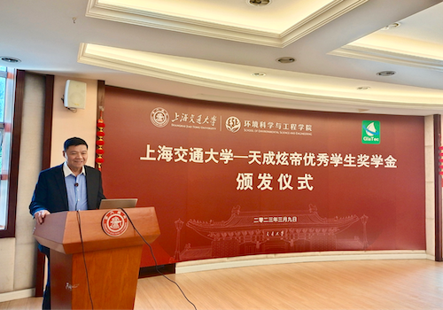 滕国忠致辞表示,上海天成环境保护有限公司是集环保工程技术研究、开发、设计、施工至环保设施运营为一体的综合型专业性公司,一直以来和周教授团队保持着良好的合作。此次用奖学金的方式支持海角网 优秀学子的学习和科研工作,正体现了企业的初心和使命,后续会持续设立奖学金激励更多学生。