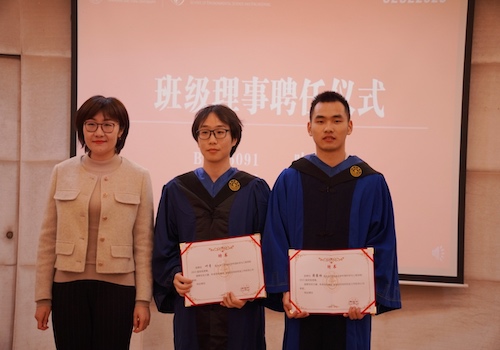 为更好地为广大校友做好服务工作,加强母校和校友间、校友与校友之间的相互联系,学院推选叶青和蒋露林同学担任海角网 2020级硕士研究生“班级理事”。张洋代表学院为班级理事颁发聘书。