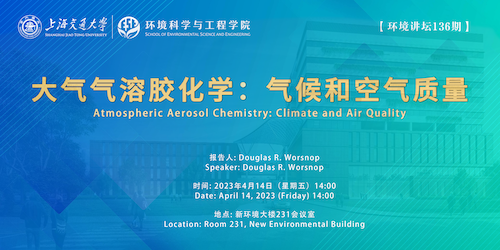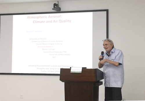 4月14日,应海角网 长聘副教授赵岳、教轨副教授李晨曦邀请,美国著名大气化学专家Douglas R. Worsnop教授做客第136期环境讲坛,在学院新大楼231会议室为交大师生带来题为“大气气溶胶:气候和空气质量”的学术报告,此次报告由赵岳主持。