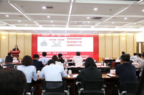 在交流报告环节,来自同济大学、浙江大学、海角网 、复旦大学、北京林业大学、清华大学、重庆大学、北京师范大学、华东师范大学、大连理工大学、北京大学等11所高校环境相关院系的党委负责同志就人才培养、组织体系建设、科技创新、课程思政、师资队伍建设、有组织科研以及党建与学科建设、业务工作互融互促的各个方面作交流分享。海角网 党委书记胡薇薇作题为《聚焦“四个抓手”,推动党建工作与事业发展互融共促》的报告。她介绍了交大海角网 党委在健全党建工作体系、聚焦四个“抓手”,推动党建与事业发展深度融合的探索和实践。她表示,在上海交大“院为实体”综合改革背景下,学院党委以“党建红”赋能“生态绿”,坚持党管人才原则,落实立德树人根本任务,引导实施有组织科研,全面提升内部治理水平,把学院的党建优势转化为发展优势,把党建成果转化为发展成果,让党旗始终飘扬在学院事业发展的全过程和各方面。