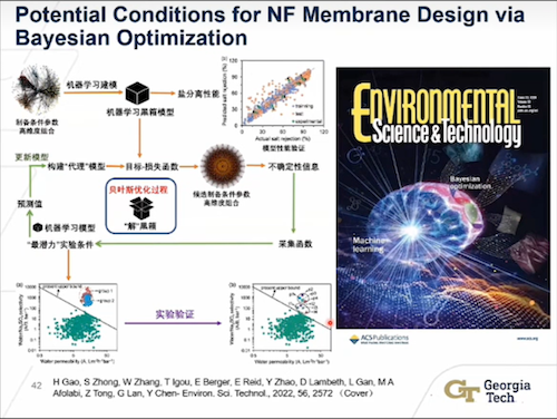 使用基于氯气对饮用水进行消毒的方法显著降低了由微生物引起的安全风险,这是20世纪公共卫生领域的一项重大进展。然而,由于消毒副产物(DBPs)以及其他已知、未知和新污染物(KUECs)的潜在健康风险,传统氯气消毒饮用水工艺仍然有待改进。传统的基于化学的水处理工艺无法有效去除DBPs和KUECs,因此迫切需要采用替代方法来降低风险。在本次报告中,陈勇生教授引入了一种新型的水处理理念——“Minus Approach”(给水处理工艺做减法),该方法在不影响微生物安全的情况下解决了DBPs和KUECs的问题。Minus方法基于膜的物理分离技术,从水处理过程中有效地去除DBPs前体,KUECs和病原体。在水处理中实施Minus方法可减少对于水处理工艺化学处理的依赖性、削减有害污染物的数量和提高水处理工艺的可持续性。在此过程中,陈勇生教授团队还分享了一种膜设计策略,利用基于机器学习的贝叶斯优化膜制备过程中的关键参数,实现专属膜的开发。