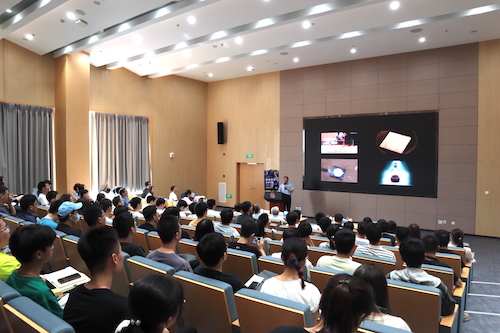 在报告中,赵东元院士通过“化学的哲学”这一话题引入,对人类发展史伴随着的化学史展开了深入浅出的科普。随后,赵院士介绍了介孔材料的前世今生,详述了在功能介孔材料领域的重要原创研究成果,重点讨论了通过自组装的策略精确调控介孔结构、尺寸及形貌等特征,并根据其理化特性在能源、生物、医药等领域实现功能化应用。他表示,化学的魅力在于逻辑的设计,也在于个人的想象力。最后,赵东元院士以“介孔生物门”以及斐波那契数列启发下的“葫芦状化学级联反应腔”等多学科跨界组合的研究实例,为师生们呈现了一场关于化学与未来介孔材料的学术盛宴。