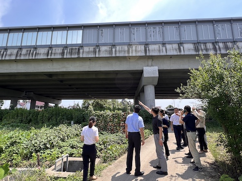 座谈会结束后,蔡俊团队与生态环境部大气司调研团队一行赴杭州湾跨海大桥北接线高速公路翁村段进行了实地调研。在蔡俊老师指导下,翁村段通过采取现有声屏障顶部降噪改造、伸缩缝局部修缮及声屏障边缘延长的综合降噪方案,实施后声屏障提质效果达5~7dB(A),敏感点夜间环境声压级由58~60dB(A)降低至50~51dB(A)。经闭环验收,该项目改造效果得到了参会的市、区、镇和村代表及与会专家的一致肯定,中央环保督察项目的噪声污染问题投诉也得以最终撤案。调研团队对通过技术创新开展交通噪声治理的做法表示赞赏,鼓励相关单位做好典型案例挖掘,进一步推广经验做法。目前该声屏障提质增效技术将陆续在北京、宁波和湖州等地的交通噪声治理和声屏障改造项目中使用。