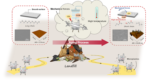 本研究探究了填埋场中两种重要环境条件——动态机械力和高温对塑料老化行为的影响,简化了对垃圾填埋场复杂条件下塑料垃圾老化降解机理的探索,有助于进一步理解塑料垃圾在长期填埋过程中的老化以及微塑料的产生过程。研究结果揭示了机械-热耦合条件对塑料垃圾的显著老化效果及其机理,剖析了促进塑料老化的关键驱动因素,为实际填埋场管理过程中缓解微塑料污染措施的制定提供了重要的理论依据。