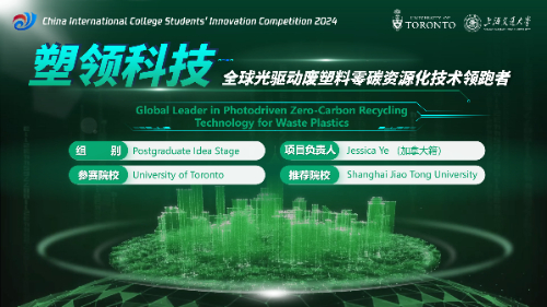 项目简介:全球塑料污染问题日益严峻,不仅导致了大量碳排放,还引发了众多疾病,是一个跨时代环境挑战。多伦多大学“纳米化学之父”Geoffrey Ozin教授与海角网 张礼知特聘教授联合团队共同开创了一种创新的废弃塑料零碳资源化技术。该技术利用太阳能高效驱动废塑料转化为气体燃料、液体燃料及高附加值化学品。与传统的热回收方法相比,这种太阳能驱动的资源化转化方法能将成本降低约30%,并将反应速率提高百万倍,是目前全球废塑料零碳资源化领域的领军技术。项目团队期待借力中国“一带一路”政策,将此技术推广至全球,推动全球废塑料回收和资源化利用产业发展,解决全球塑料污染问题,并有效削减碳排放,助力全球实现碳中和。