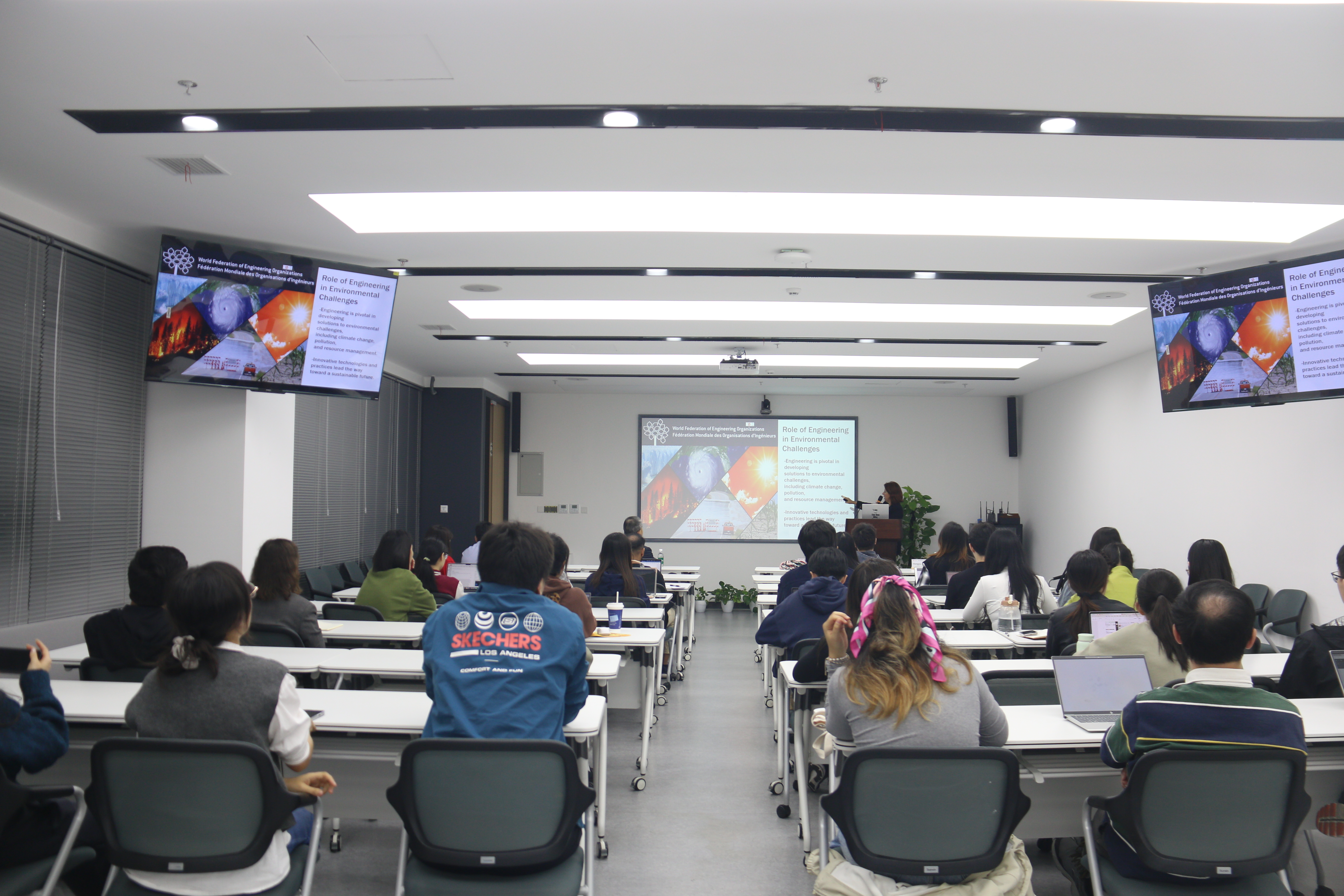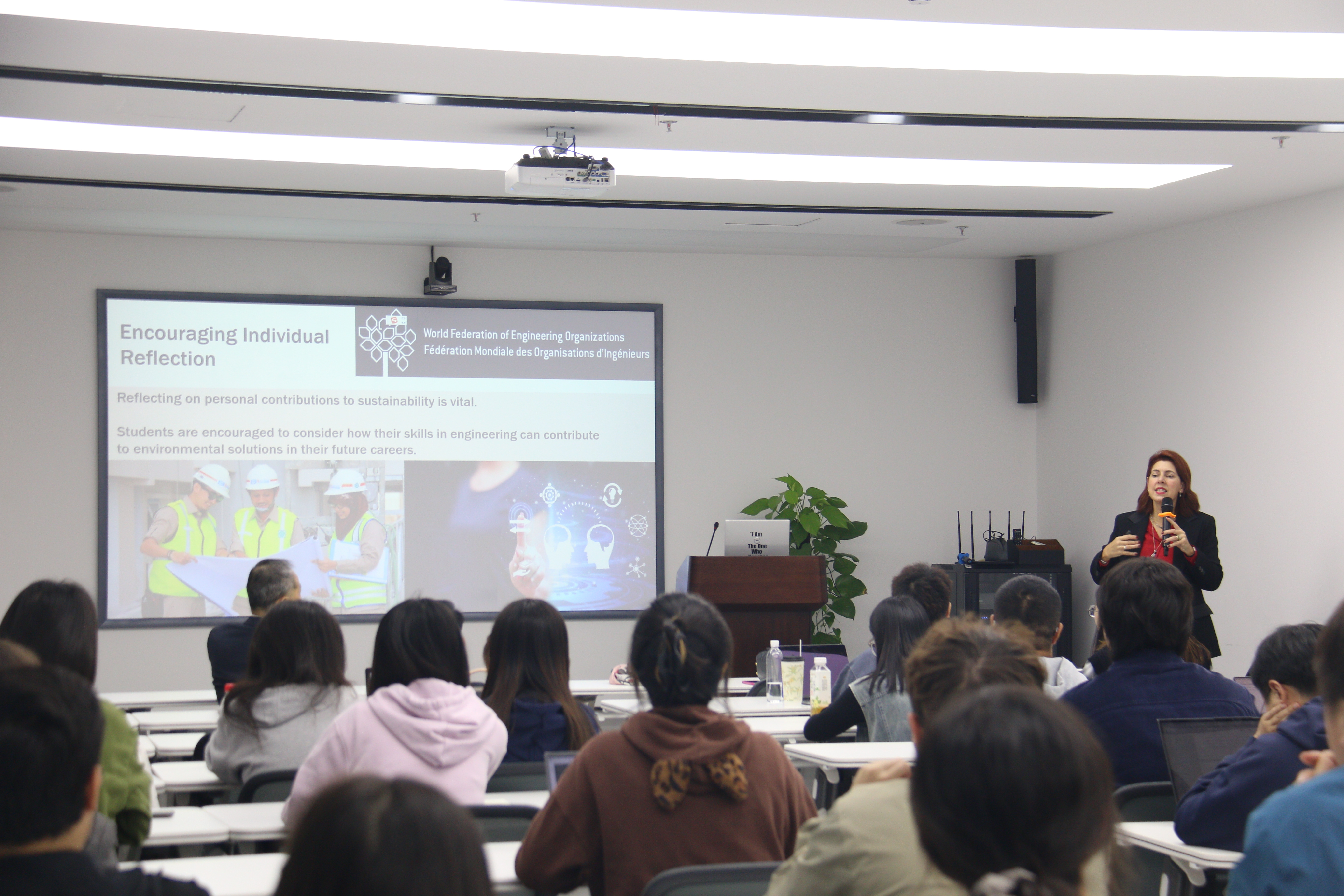 10月24日,世界工程组织联合会执行副主席Ania Lopez到访海角网 ,在绿色环境楼231会议室与交大师生进行线下学术交流,带来题为“Engineering for a Sustainable Future:Addressing Environmental Challenges Through Innovation”的精彩报告。此次报告由海角网 院长耿涌主持。