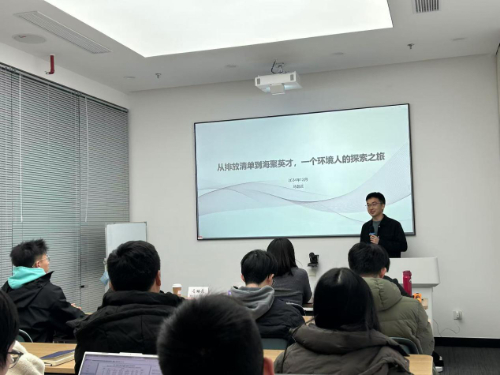 马瀚辰围绕碳中和与清洁空气协同推进、政府重点推动的人才政策两个方面展开分享。他详细介绍了碳中和与清洁空气协同减排的现状、重点人才政策的主要内容、体制内的工作难点和未来发展等内容,具体分享了自己在职业规划方面的心得,并向同学们分享了宝贵的基层选调报考经验。