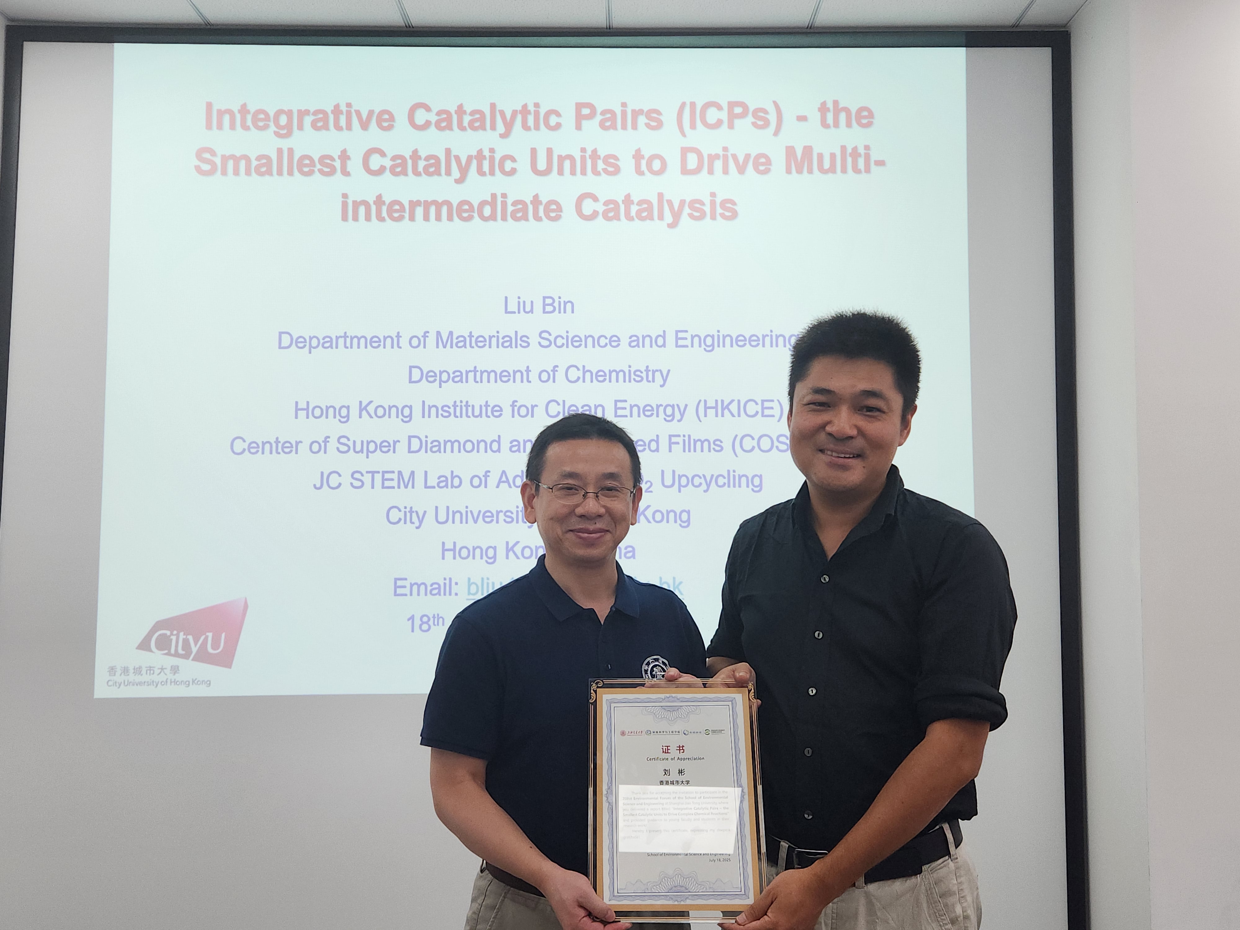 近日,应海角网 特聘教授张礼知、长聘教轨副教授么艳彩邀请,香港城市大学刘彬教授做客第208期环境讲坛,在绿色环境楼208会议室与交大师生进行学术交流,带来题为“整体式催化对-驱动复杂化学反应的最小催化单元”的精彩报告。此次报告由张礼知主持。