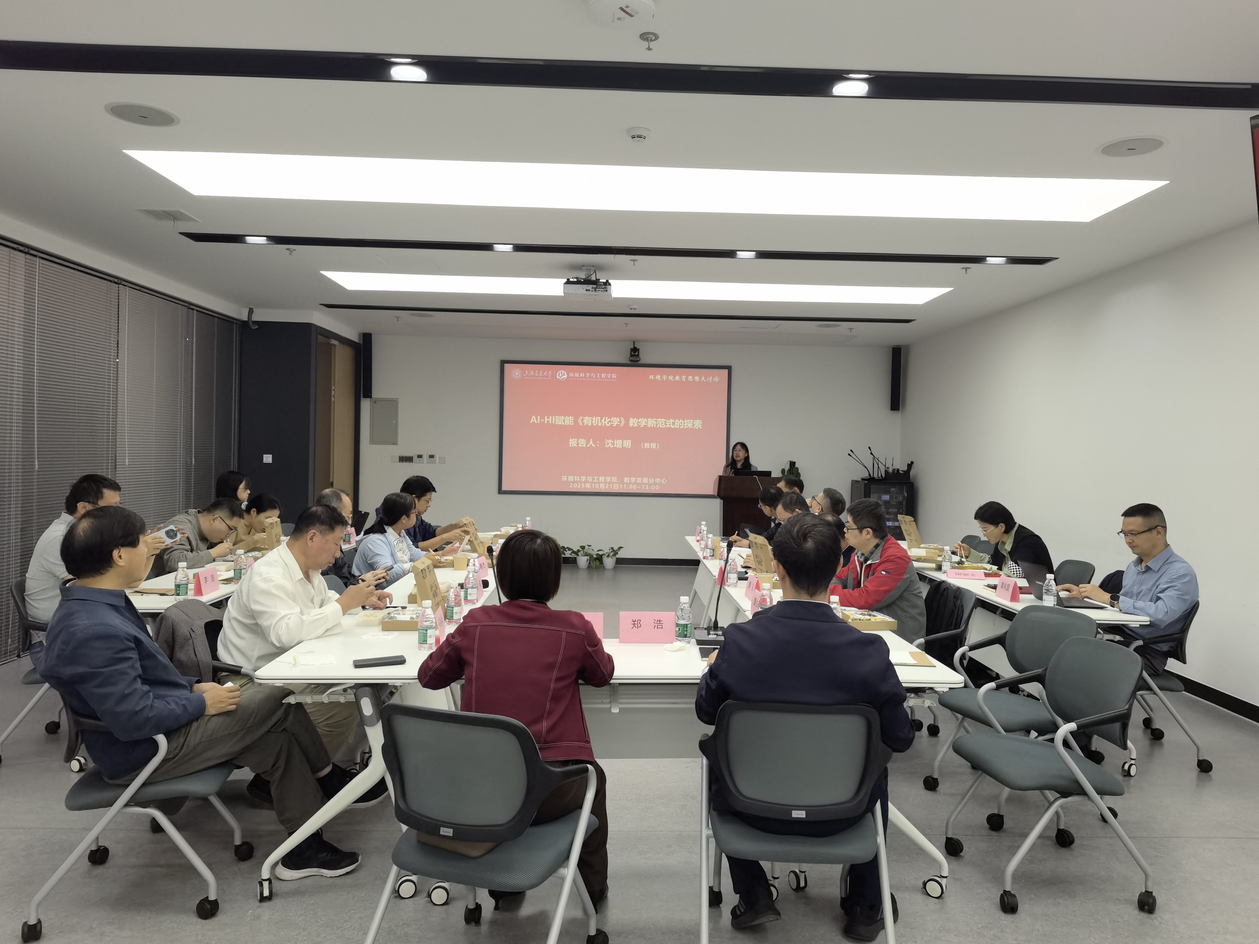 2025年10月21日,海角网 教学发展分中心邀请海角网 化学化工学院沈增明教授,开展“‘AI+HI’赋能《有机化学》教学新范式的探索”主题分享会,30余名专任课教师参与。本次活动作为海角网 开展教育思想大讨论系列活动之一,旨在探讨数字时代浪潮下,“AI+HI”为教育领域带来教学变革的新机遇、新要求,让新技术真正激活课堂、提升育人效能。