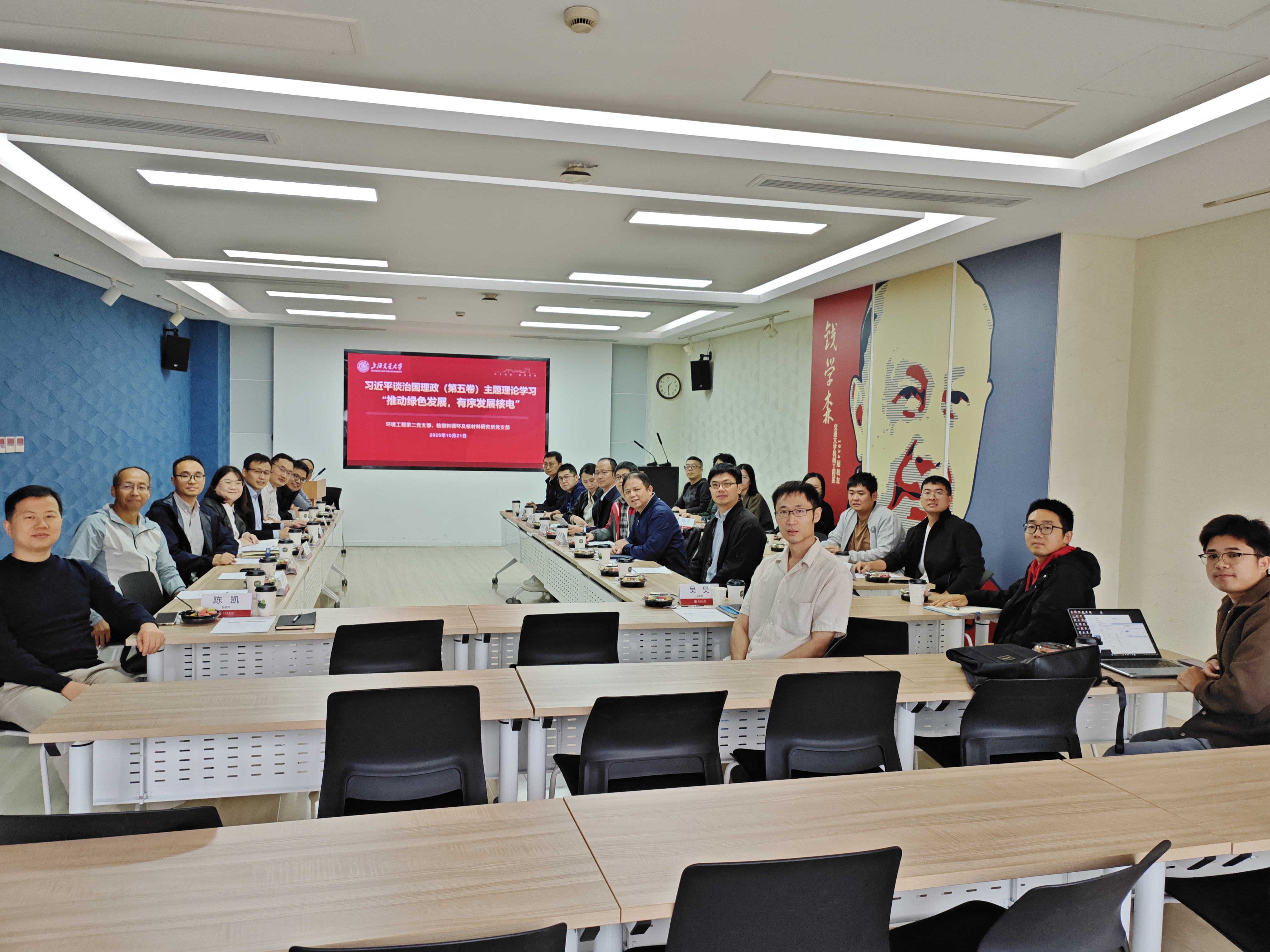 2025年10月21日,海角网 环境工程第二党支部与机动学院核燃料循环及核材料研究所党支部共同举办习近平谈治国理政(第五卷)理论学习主题党日活动。本次活动以“推动绿色发展,有序发展核电”为主题,通过联合学习、深入研讨和实地参观,促进了两个支部在理论学习和业务实践上的深度融合。机动学院党委书记胡永祥、海角网 党委书记郑浩应邀出席活动。