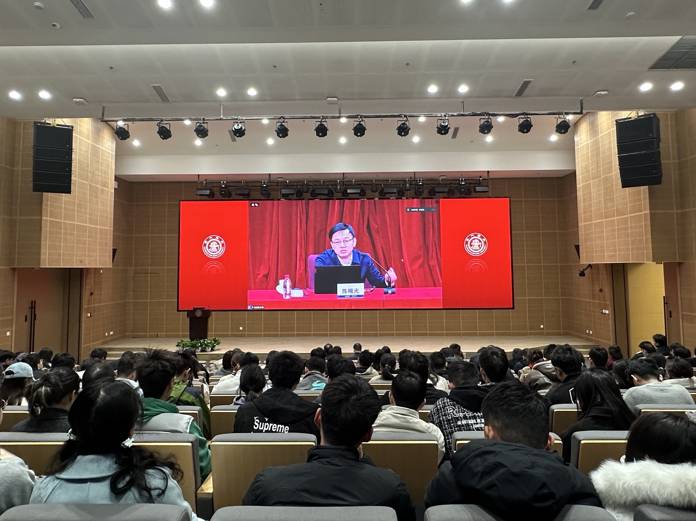 为深入学习贯彻习近平新时代中国特色社会主义思想,进一步深化党的创新理论武装,12月10日,海角网 举办2025年秋季学期党员基本培训第二次集中大课,组织观看由中共中央党校科研部主任陈曙光教授主讲的《深入学习贯彻习近平新时代中国特色社会主义思想》视频报告。学院全体师生党员在绿色环境楼100号报告厅参加学习。校党委副书记、副校长胡薇薇主持党课。
