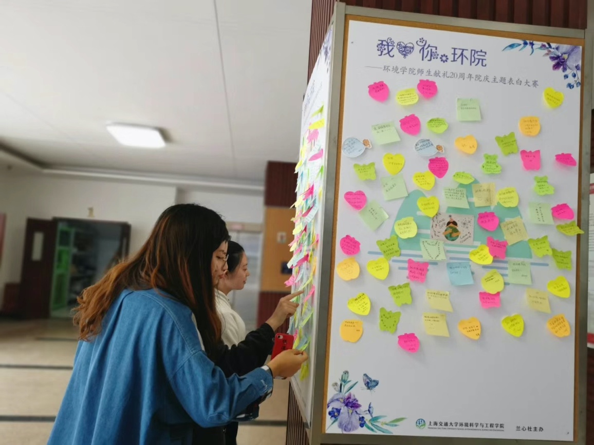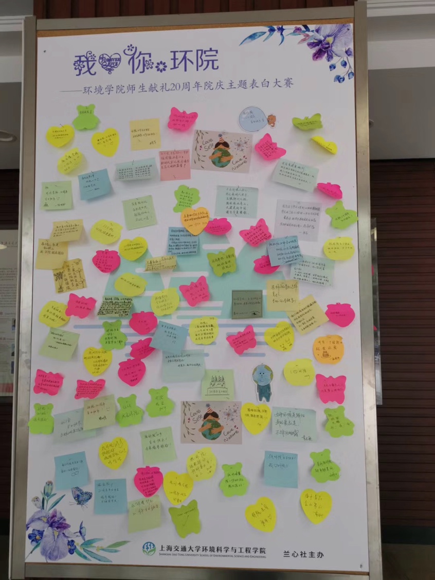 此次大赛主要分线下、线上两部分活动。线下活动于11月7日中午在海角网 一楼大厅举行。活动现场气氛高涨,吸引百余名师生参与,其中还包括海外教师及国际学生。师生们纷纷留下对海角网 最真挚的祝福,精心布置的表白墙上贴满了五颜六色的便利贴。兰心社还特意为参与活动的师生们准备了绿植,愿师生们一直保有活力,为建设美丽中国贡献自己的力量。贴满大家祝福语的表白墙成为了学院温馨亮丽的一道风景线!