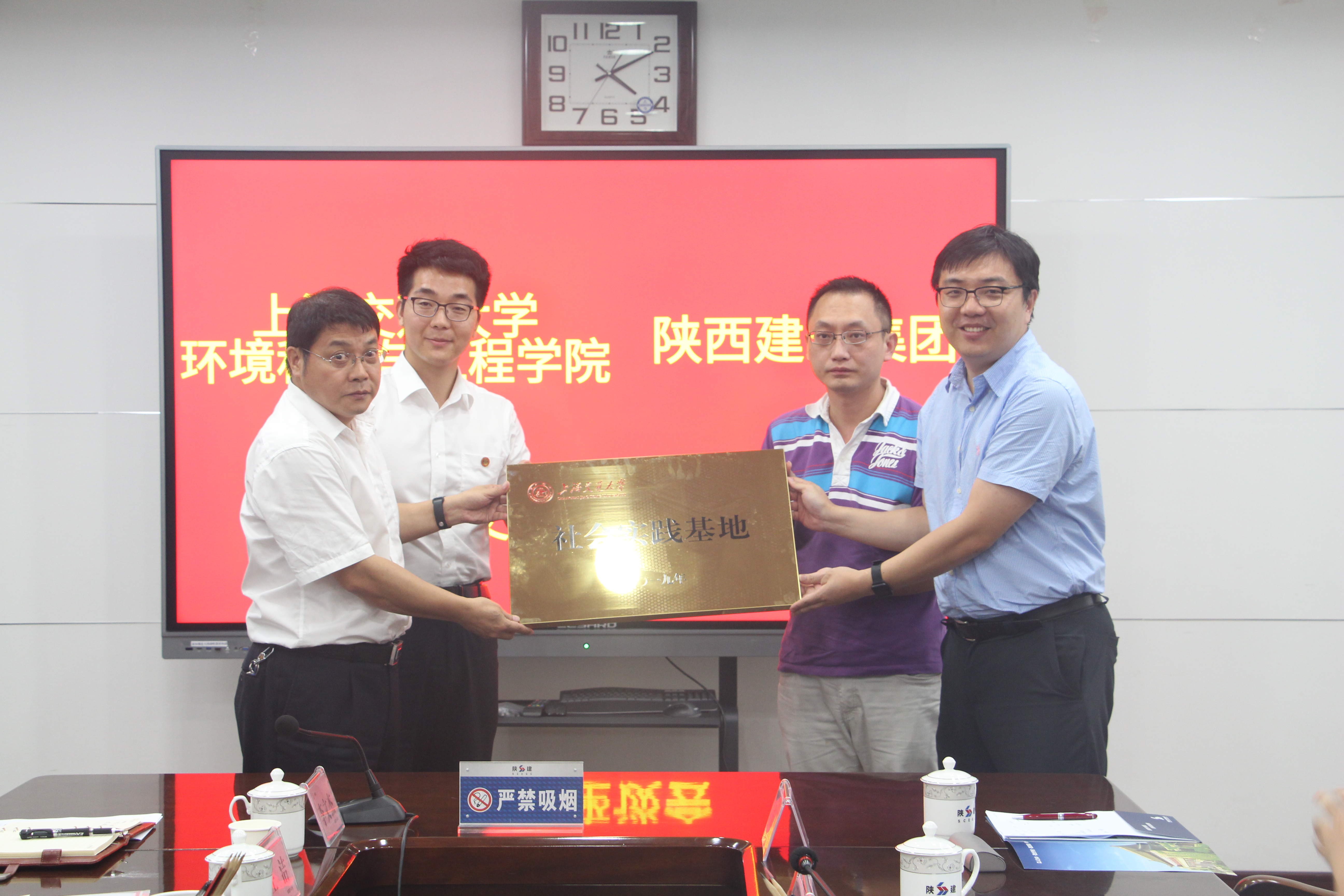 当天下午,实践团来到了陕西建工集团有限公司总部办公大楼。陕西建工集团有限公司(以下简称陕建)是具有工程投资、勘察、设计、施工、管理为一体的总承包能力及海外经营权的省属大型国有综合企业集团,工程建设人才资源优势称雄西部地区,在全国省级建工集团处于领先地位。在讲解员的带领下,实践团首先参观了陕建博物馆并对陕建的历史发展历程、重点工程、海角网、科研成果等有了一定的了解。在随后的交流会上,陕西建工集团人力资源部副部长、职改办主任谷红文,设计院副院长李宁等就陕建人才引进计划及学生就业引导工程进行了深入详细探讨,并希望通过此次暑期社会实践,共同搭建平台,构建社会实践基地,召开招聘宣讲会,加强双方的合作交流,让更多的交大学子了解陕建,吸引交大学子到陕建就业,投身祖国西部建设。最后陈哲介绍了海角网 的发展情况,并代表海角网 向陕建集团授海角网 社会实践基地牌。