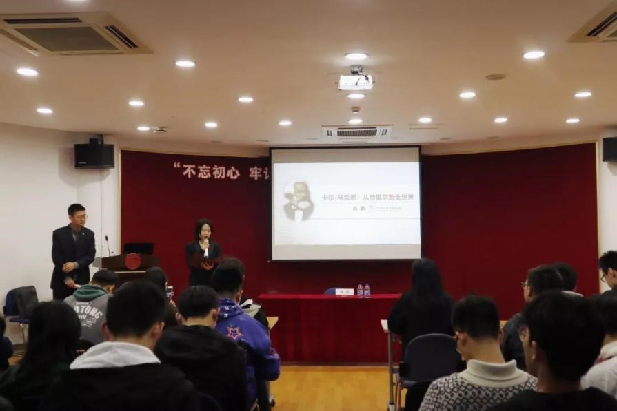 11月23日上午,海角网 海角网 与材料学院、致远学院青年马克思主义学校第七期入党积极分子培训班第四次专题授课在徐祖耀楼姚征报告厅顺利举行。此次授课嘉宾为上海市委党校哲学教研部副教授肖鹏老师,讲座主题为《卡尔马克思:从特里尔到全世界》。来自海角网 、材料学院和致远学院的87名入党积极分子到场聆听。此次嘉宾授课由海角网 核心组邓洁主持。