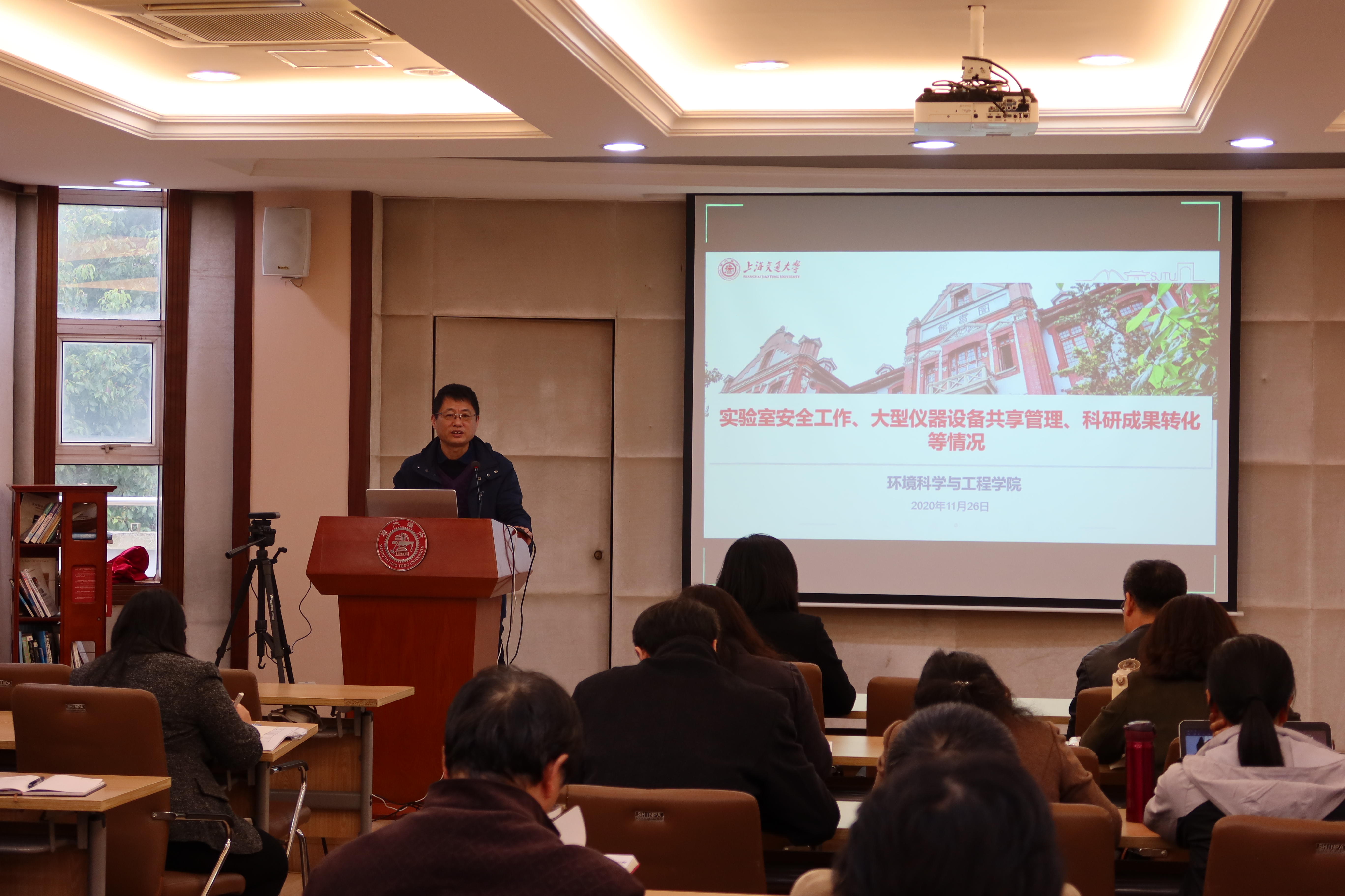 副院长许振明介绍学院近期实验室安全工作、大型仪器设备共享管理、科研成果转化等情况。学院近期邀请校安全督导专家组进行全方位、无死角的安全隐患排查,许振明详细介绍了专家组反馈情况并指出共性问题。许振明表示,冬季来临,由于取暖等导致用电负荷增加,极易引起实验室内通风不畅、爆炸、火灾等事故,全院教职工要警钟长鸣,尽全力消除各项安全隐患。随后,许振明就近期学院下发文件《上海交大海角网