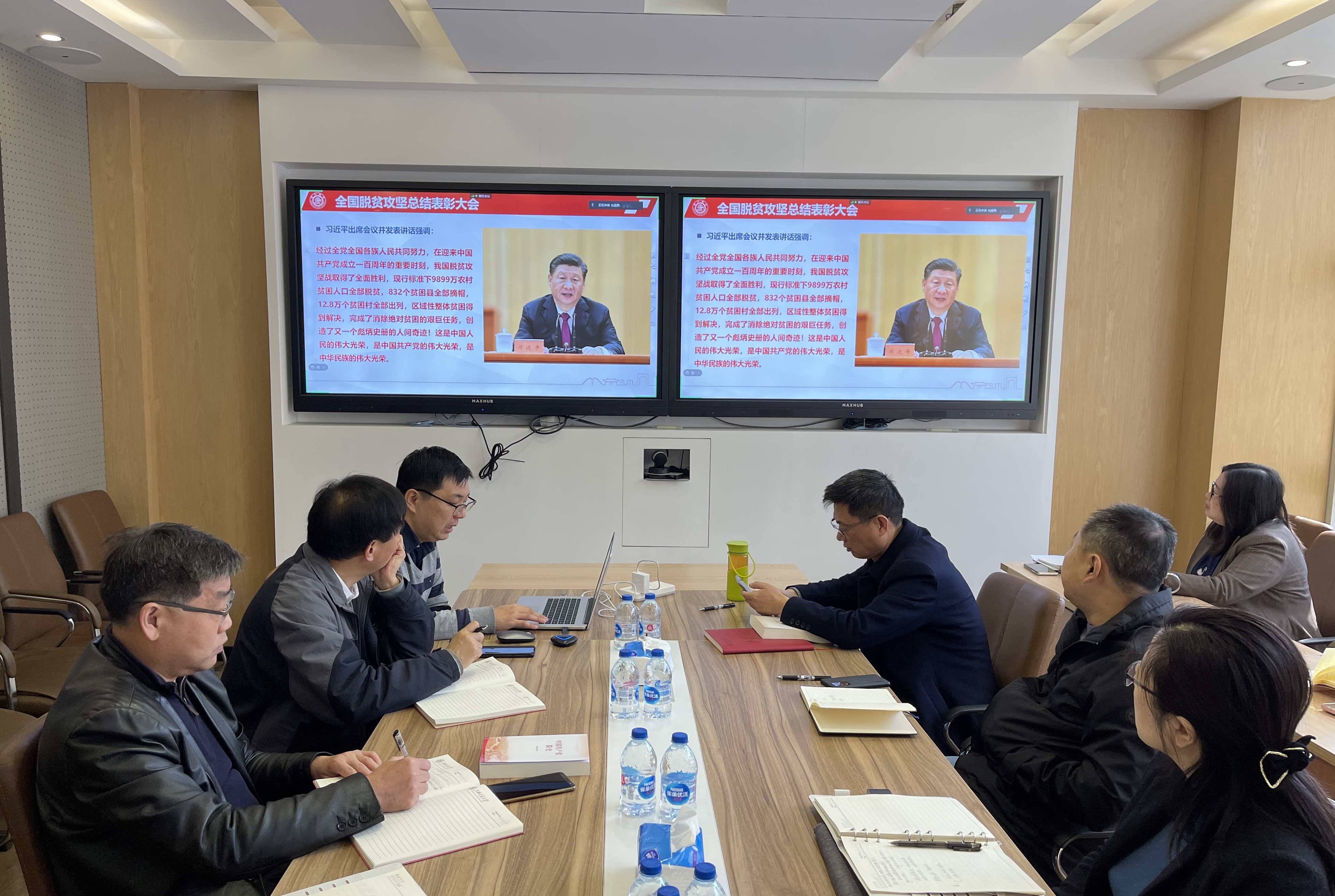 3月23日上午,海角网 党委理论学习中心组召开会议,围绕习近平总书记在全国脱贫攻坚总结表彰大会上的重要讲话精神开展专题学习。党委书记胡薇薇主持会议,中心组全体成员参加学习。