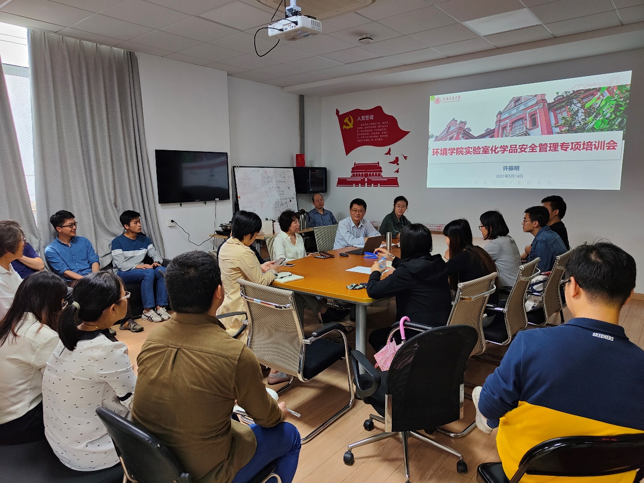 2021年即是共产党成立100周年,又是“十四五”规划的开局之年,做好安全防范、维护社会稳定是各项工作的重中之重。海角网 于5月14日中午在环境科学楼126会议室举行化学品安全管理专项培训会,海角网 副院长许振明、学院安全员武湘豫、各实验室安全员教师及学院师生共计约20余人参会。