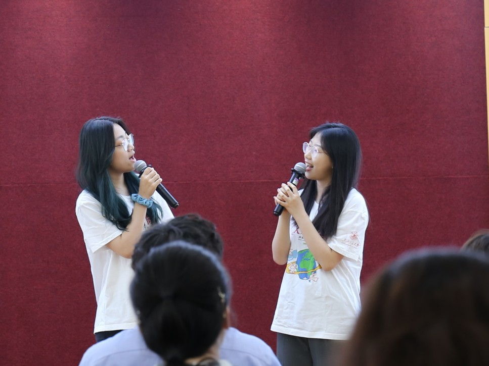 最后,在优美琴声的伴奏下,以同学们的歌声为展示作结,赢得了在场老师和同学的阵阵掌声。