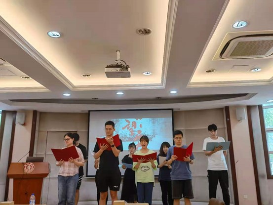 最后,本科生党支部的入党积极分子和党员带来节目《我爱你,中国共产党》,以诗朗诵的形式表达对党和国家的热爱,表达今后将致力于服务祖国、服务社会的决心与担当。