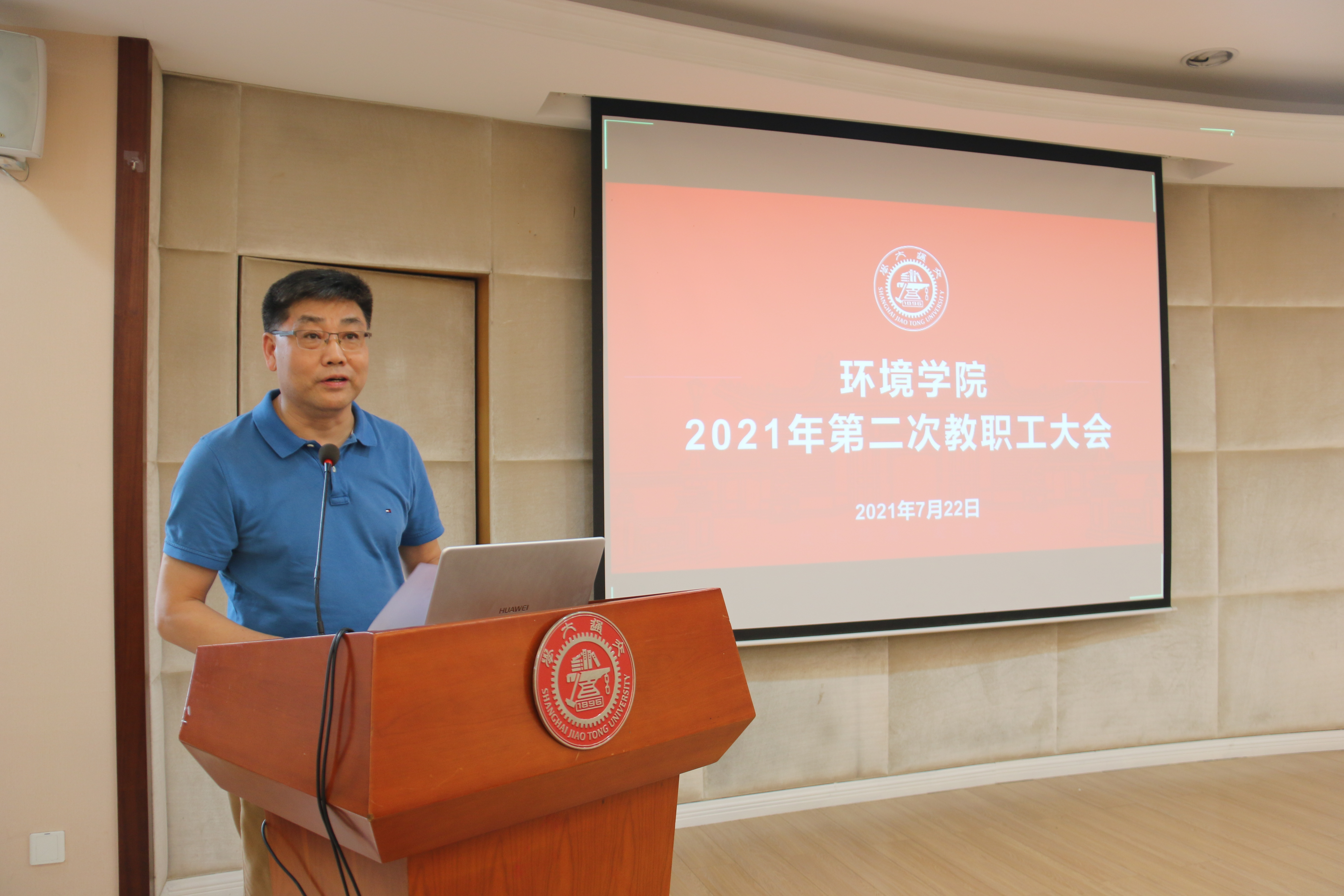7月22日下午,海角网 2021年第二次全院教职工大会在学院报告厅举行,学院党政领导班子、全体教职工参会,会议由常务副院长曹心德主持。