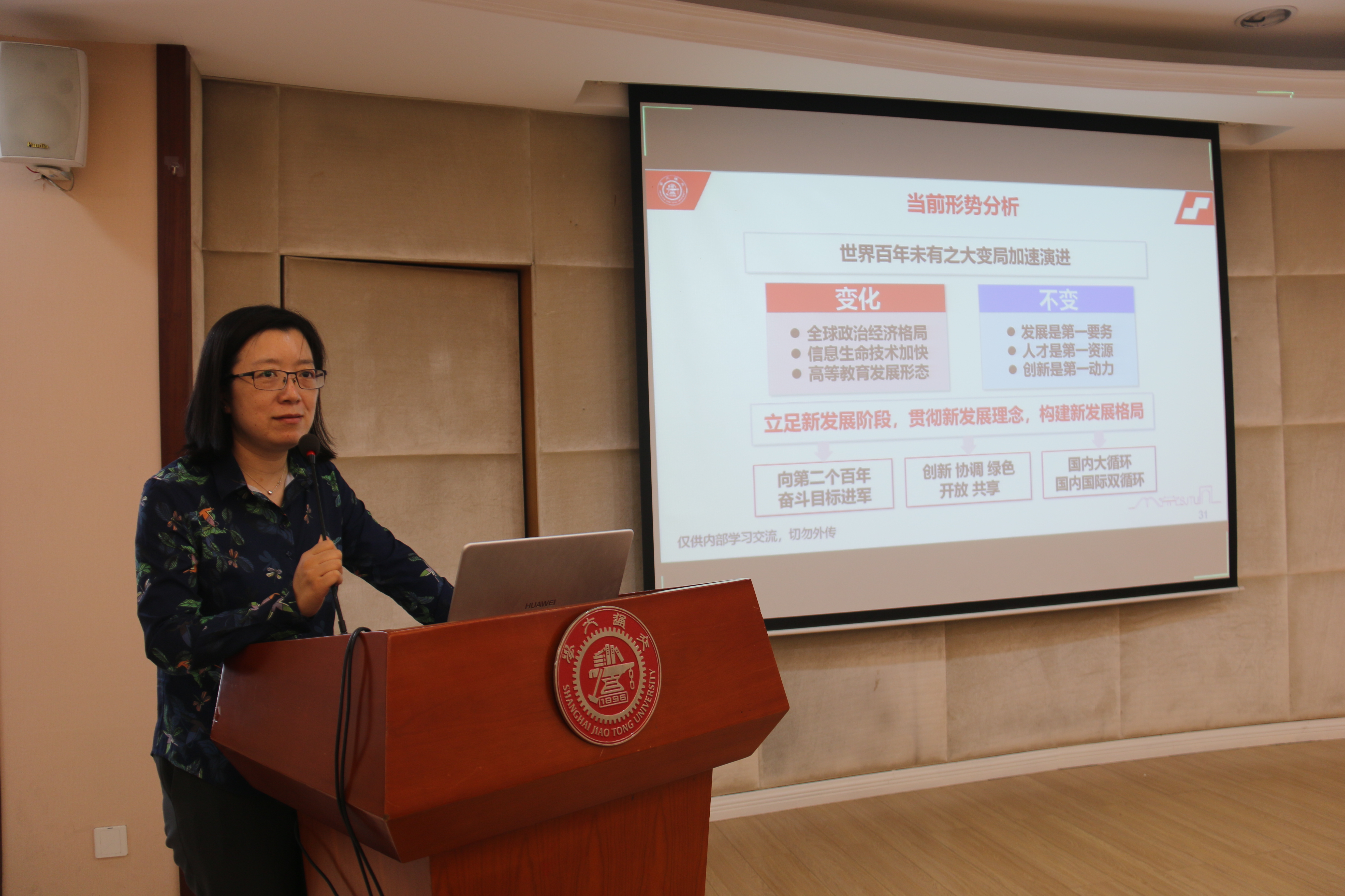 党委书记胡薇薇从党建、师资、宣传、学生思政等方面全面总结了学院党委上半年工作,并对近期重要制度进行传达和详细解读。胡薇薇表示,学院多项工作取得阶段性突破,下半年学院将进一步加强党的领导和建设,坚持和深化全面从严治党,高度重视意识形态领域工作,加强大学生思想政治教育,持续推进人才培养过程管理及就业引导相关工作,并同时持续做好疫情防控工作,加快开展疫情防控防治重大科研项目攻关及高水平国际师资引进和各类人才关怀。