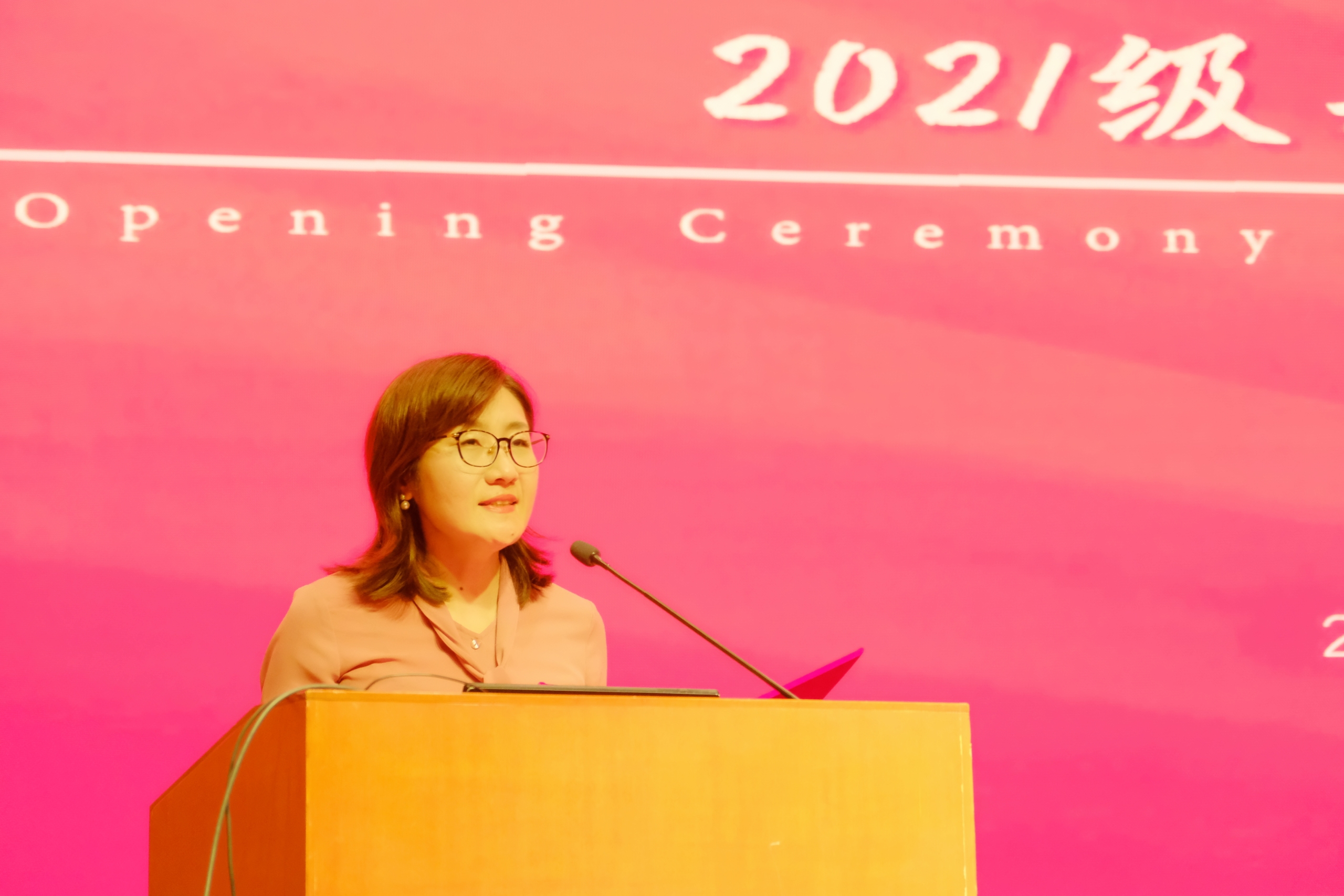 胡薇薇书记代表学院对新生的到来表示热烈的欢迎和祝贺。她表示,新环境人的加入为保护地球家园、实现人类社会永续发展注入了朝气蓬勃的年轻力量,当今世界局势风云变幻,面对新时代提出的种种挑战,新一代的中国青年、交大青年、环院青年更应当用双手郑重接下这份厚重的传承,树立信心,勇于担当。胡薇薇书记深情地寄语同学们,第一,环境保护是关乎地球命运和人类福祉的伟大事业,请大家坚信未来世界的可持续发展图景中必定有交大环境人的名字;第二,投身环境事业不仅需要宽厚坚实的知识,更需要服务社会、勇毅担当的家国情怀;最后,希望同学们以苦为乐、无所畏惧、勇往直前,成为有志气的交大人、环境人!
