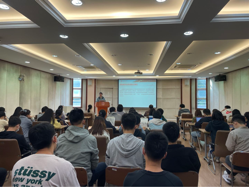 为切实做好实验室安全教育工作,提升师生实验室安全意识和防范能力,有效预防和减少相关安全事故的发生,2021年11月3日上午,海角网 在环境科学楼二楼报告厅举办2021级新进师生实验室安全培训活动,共有70余名研究生和博士后参加。
