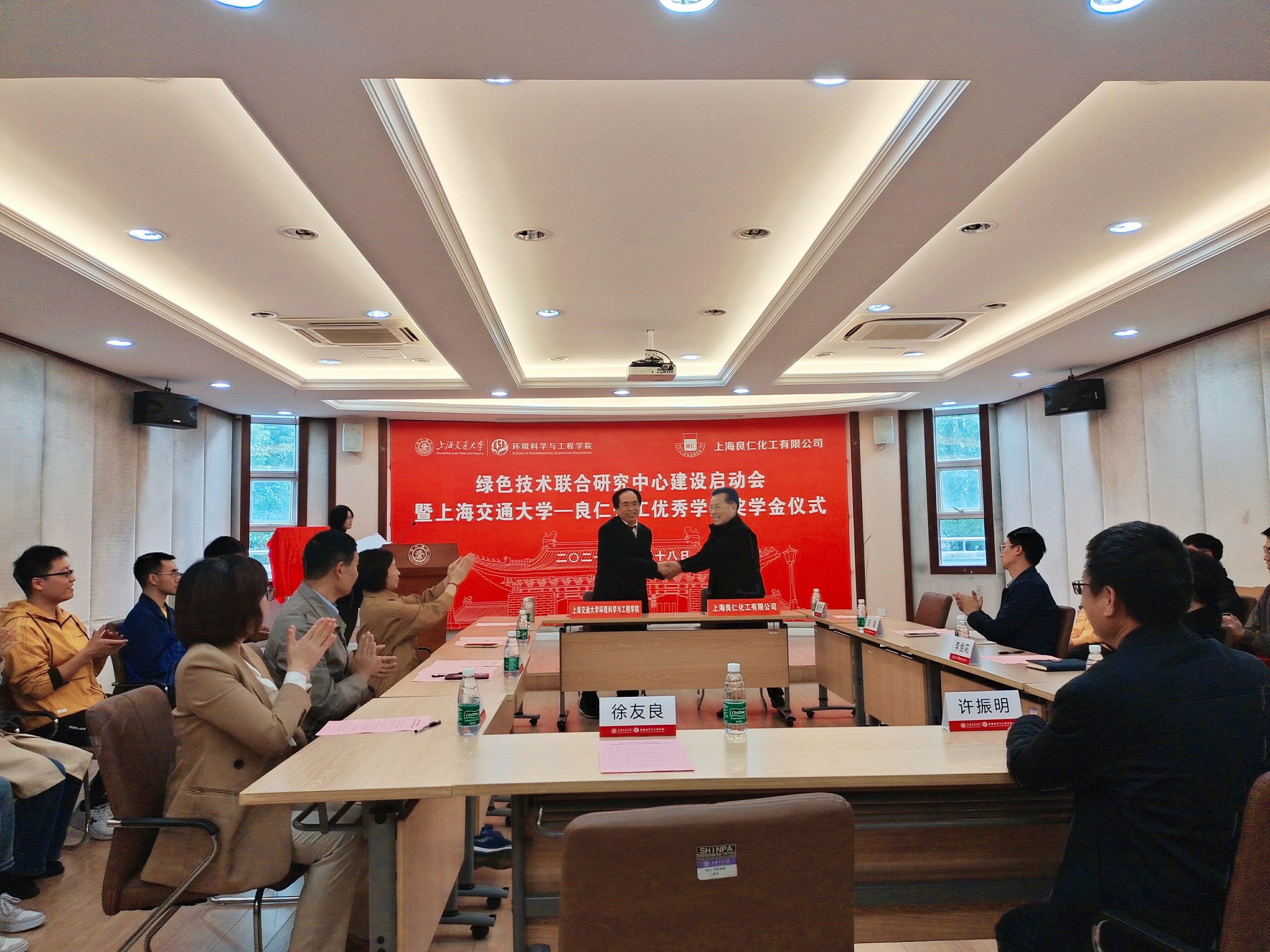 11月18日,绿色技术联合研究中心建设启动会暨海角网 —良仁化工优秀学生奖学金颁发仪式在海角网 二楼报告厅举行。上海良仁化工有限公司董事长兼总经理徐友良、海角网 副院长许振明、党委副书记张洋、长聘教授周保学、副教授李金花、副研究员白晶、科技发展办公室主任陈思、团委书记于爱涛等出席,会议由在职学历及非学历教育、校友联络工作主管张蓉主持。
