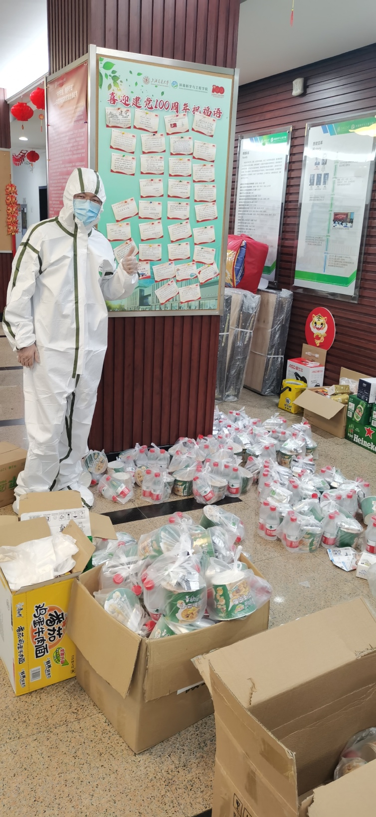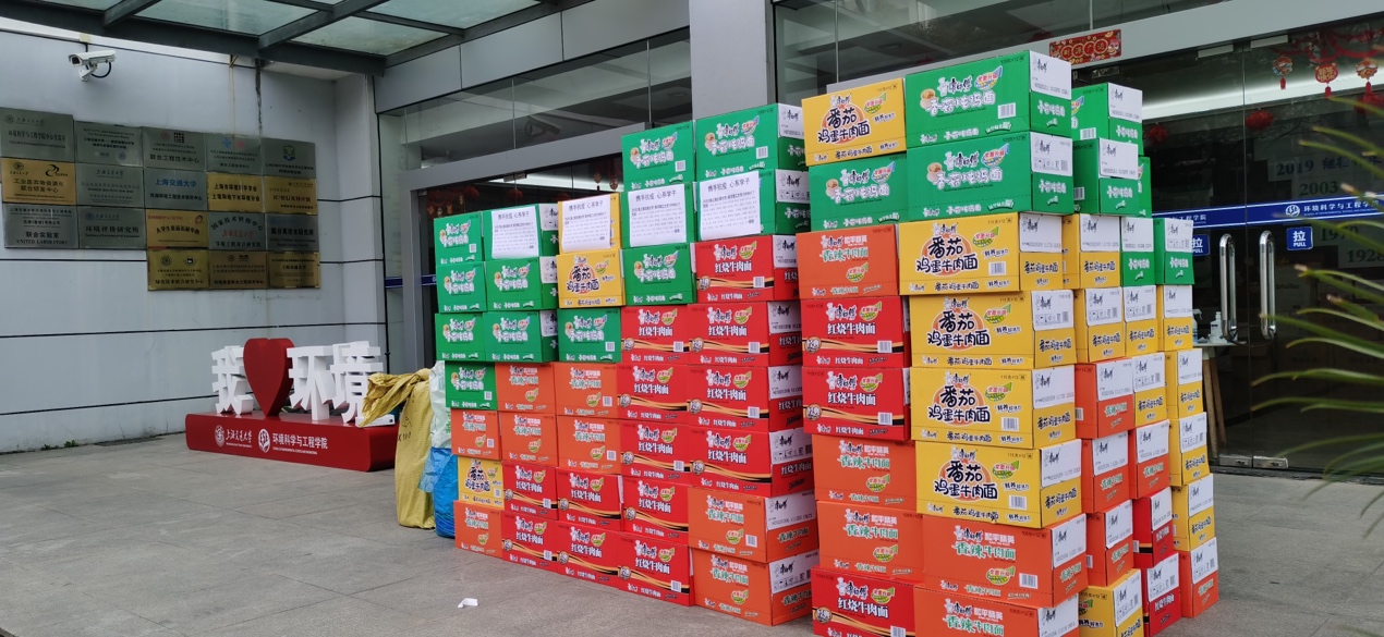 得知学校封闭管理的消息,2020级海角网 -南洋理工大学EMBA17班代表第一时间与学院取得联系,沟通了为在校环院学子捐赠急需食品和防疫品的心愿。不到10小时,满满200箱高级桶装方便面和价值10000元的蓝帽泡腾片就已抵达学院门口。