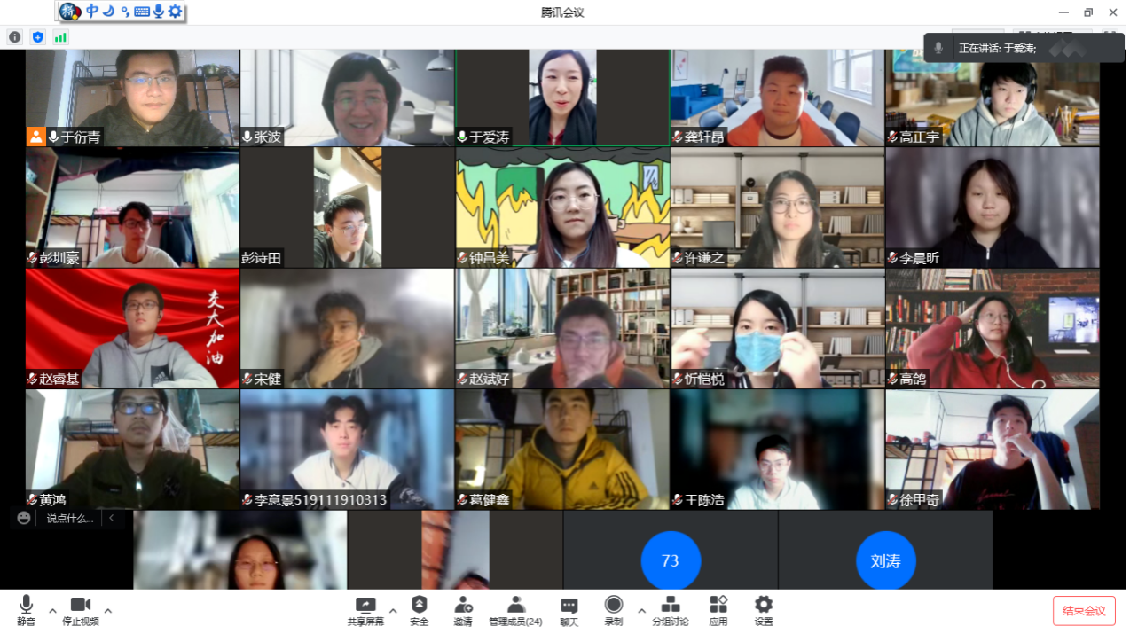 在电脑上打下这句问候语的时候,我的脑海里立刻浮现出你们青春的模样。如果没有疫情,此刻也许你们正在实验室摆弄着瓶瓶罐罐,在仪器前进行着测试分析,在教室里认真听课,在工作室热烈讨论,在操场上挥汗如雨……因为封校、封楼,你们活动的范围越来越小。虽然老师不在你们身边,但无时无刻不在惦念着你们,通过我们的微信群,通过学院在校老师的工作群,关注着你们是否能够吃饱、睡好,是否能够正常听课、学习,心情又是否舒畅。有时感觉自己像个爱唠叨又怕孩子烦的母亲一样,每次在群里发消息都要三思再三思,每次开班会、组会都要事先把每个同学的情况在脑海里过几遍,在这样一个特殊的时期老师想给你们更多的爱与关怀。