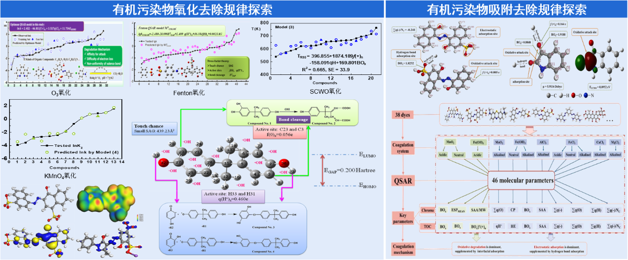 有机污染物具有种类多、难降解、毒性大等特点,对生态系统及人类健康构成潜在风险。氧化和吸附方法对有机污染物的去除具有良好的效果,本重点实验室明确有机污染物在氧化和吸附过程中的内部影响因素及去除规律,可为新生或缺乏实验数据的有机污染物的污染防控提供科学依据。